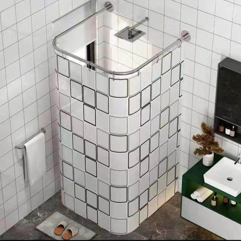 免打孔U型浴帘杆套装伸缩杆u形浴室卫生间洗澡防水淋浴房挂帘裕康