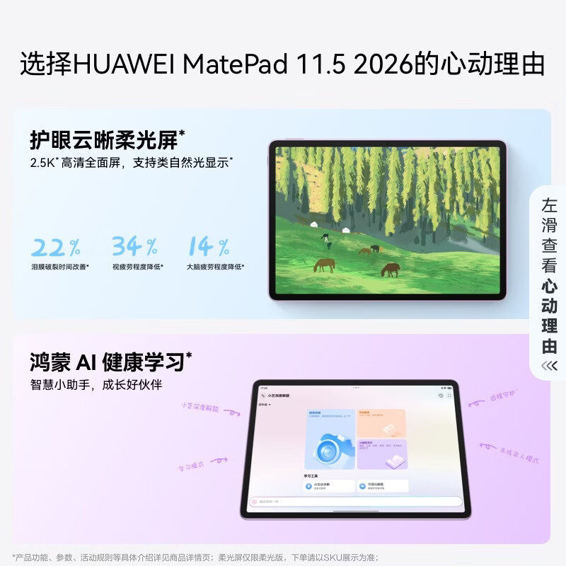 HUAWEI MatePad 11.5 2026 华为平板电脑 护眼屏 鸿蒙AI 大电池 学生儿童学习机 刷题娱乐追剧网课笔记-178