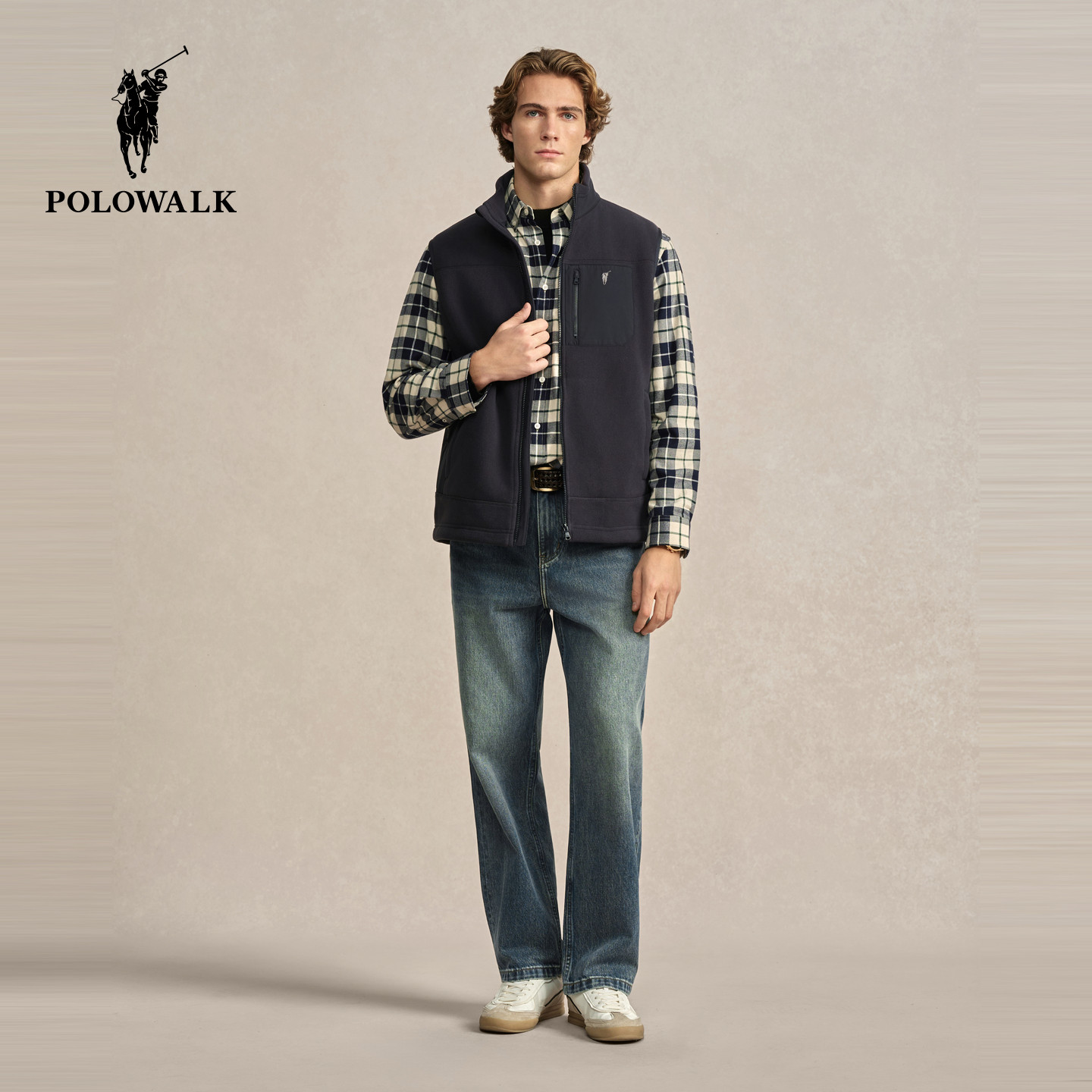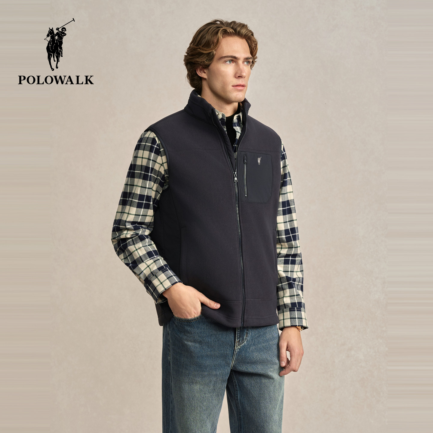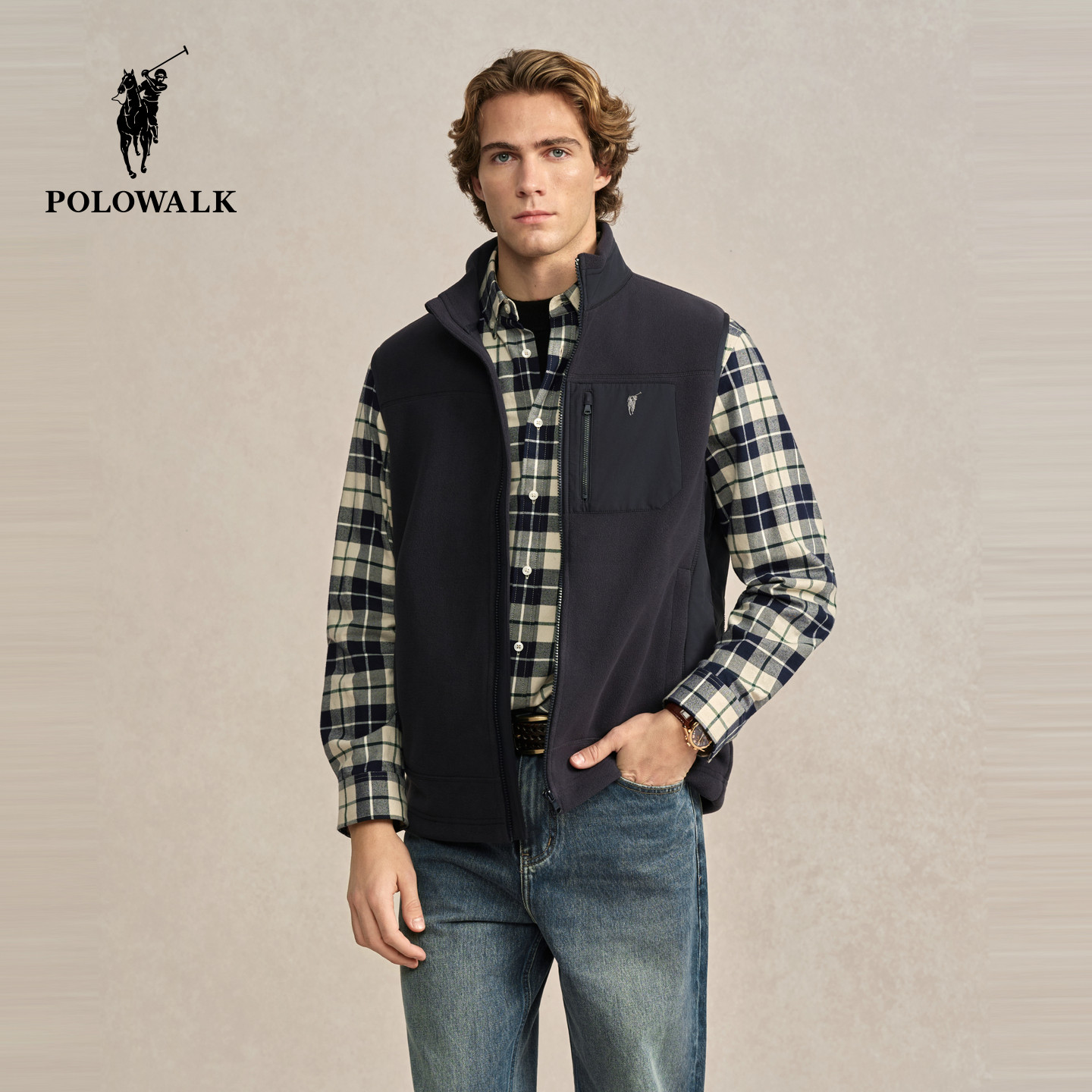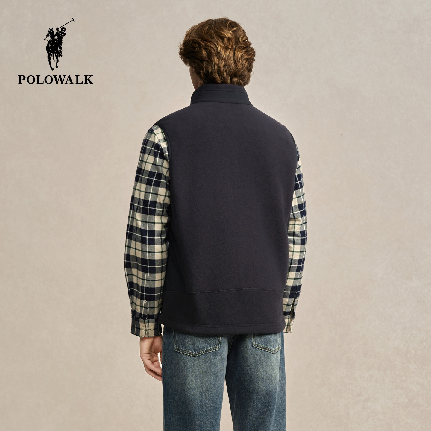 POLOWALK男式马甲2025冬季新品拼接立领休闲简约百搭摇粒绒马甲