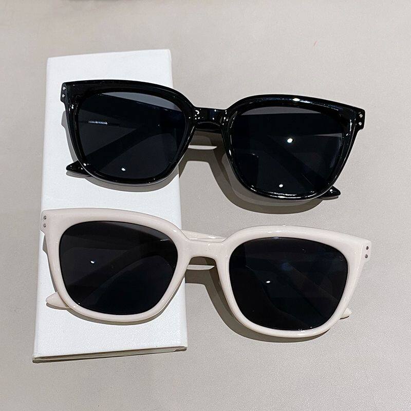 韩版方形米白色高级感显小脸拍照复古方框太阳眼镜女款偏光遮阳