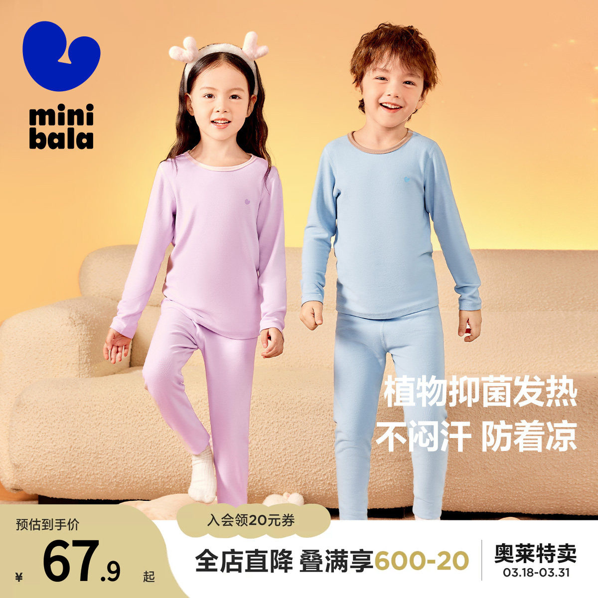 【植物芯】迷你巴拉巴拉秋冬男女童保暖抑菌内衣套装亲子打底睡衣