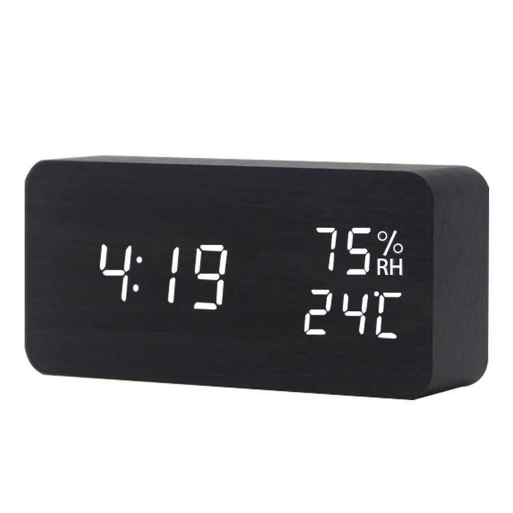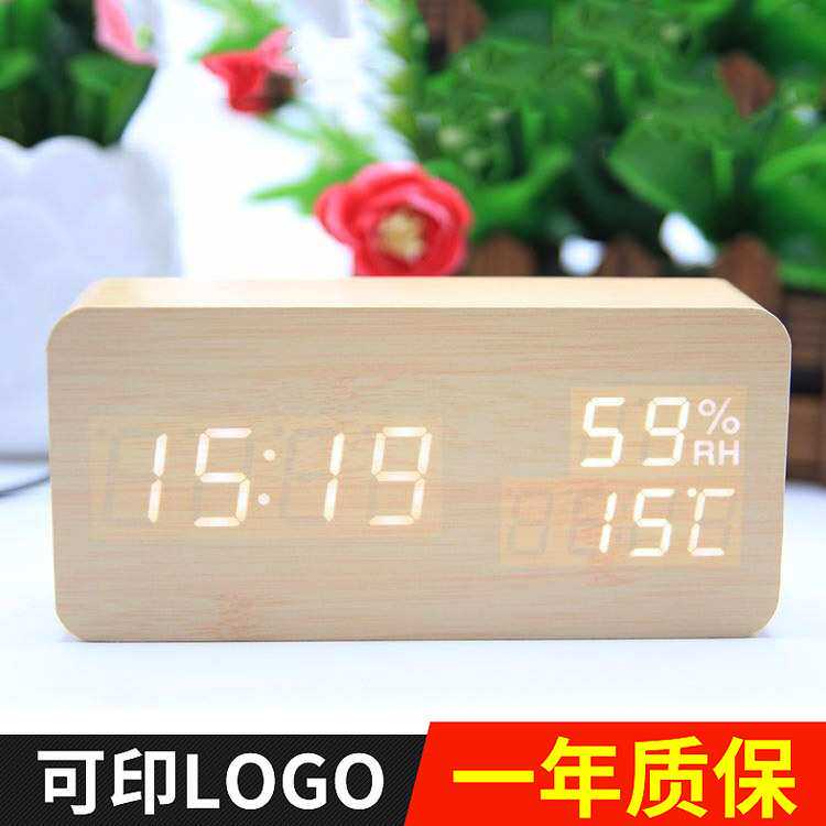 温湿度led木头钟LED智能声控电子闹钟木质数字座钟时钟夜光石英钟