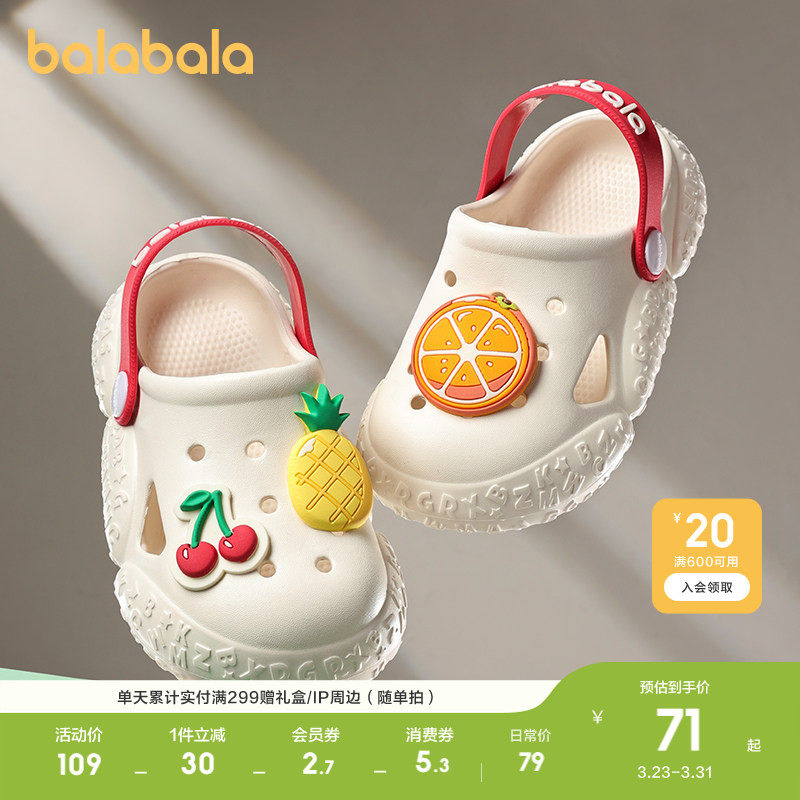 巴拉巴拉童鞋儿童洞洞鞋防滑可外穿拖鞋男童女童凉鞋夏季休闲百搭