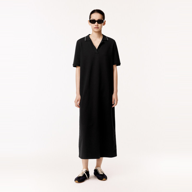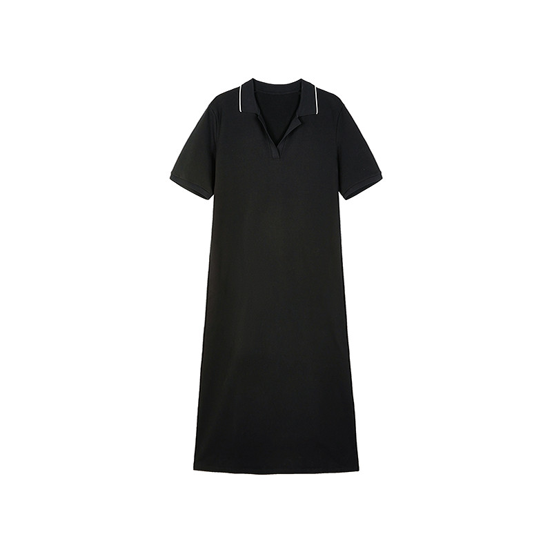 LESS夏季气质纯色休闲简约翻领套头短袖Polo长款连衣裙2O5G12790