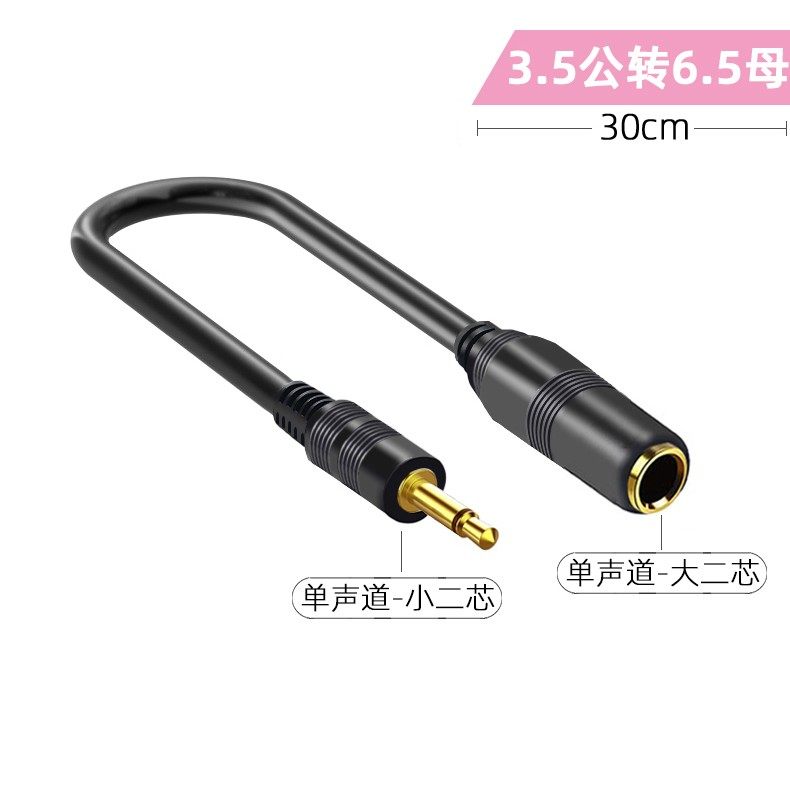 90度弯3.5mm转6.35大二芯转换线3.5公转6.5母转接头调音台音频线