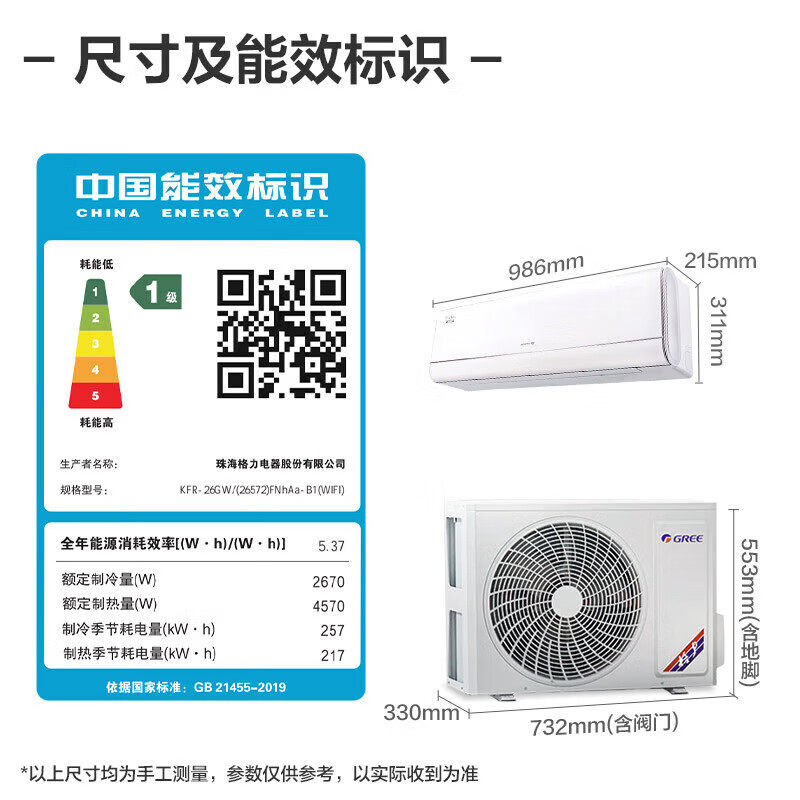 格力空调官方正品臻焕风大一匹一级能效节能变频冷暖两用卧室26GW