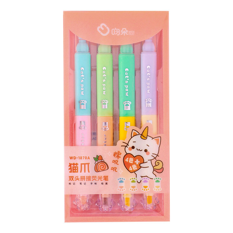 校园用品卡通猫爪双头荧光笔 ins彩色拼接手账笔学生划重点记号标