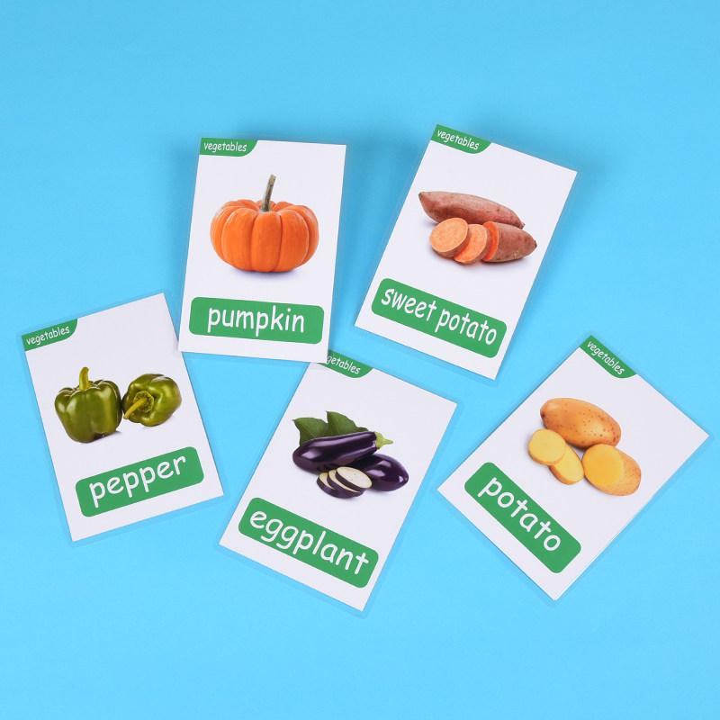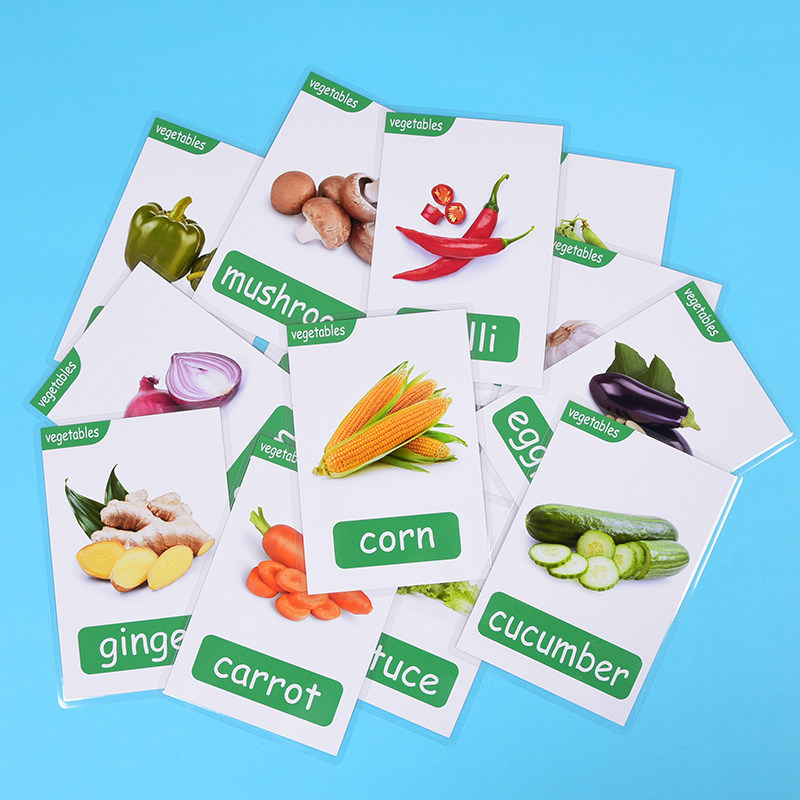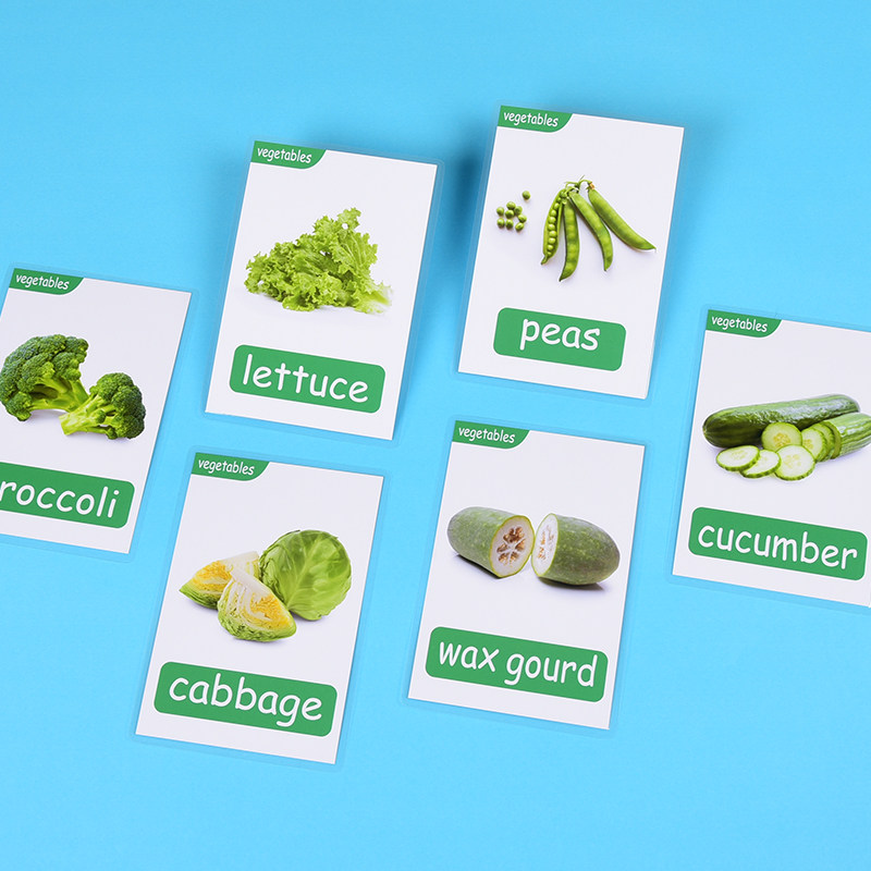 英语单词闪卡tpr蔬菜类单词卡片20张幼儿启蒙认知早教卡通彩图塑封防水卡片儿童学习幼儿园老师教学教具定制