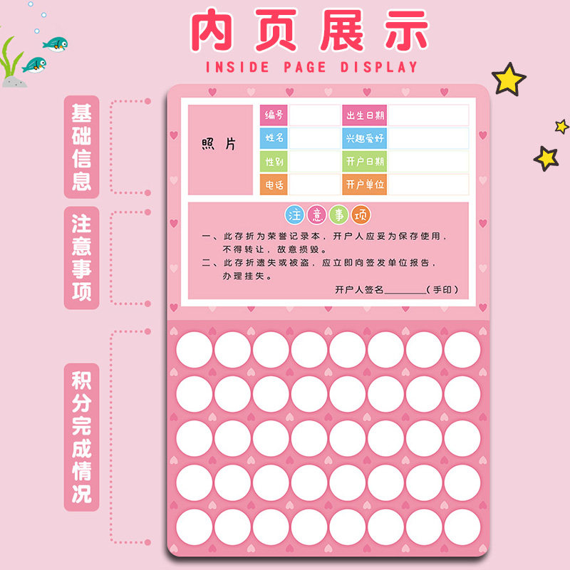 心愿存折小学生奖励孩子的积分本积分卡幼儿园小红花收集本贴纸儿童印章奖励本盖章册学习阅读打卡记录本家用