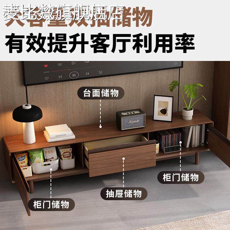 麦比梵实木中古风电视柜茶几组合客厅家用2025新款收纳储物柜一体小户型床笠拉车