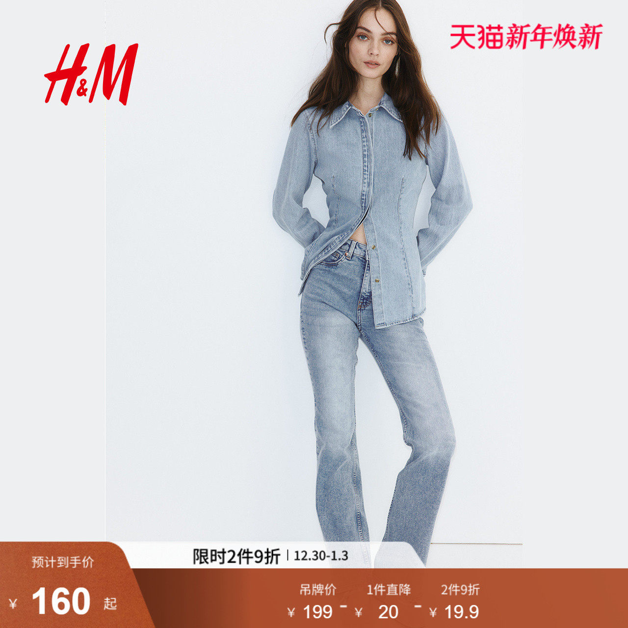 HM女装牛仔裤冬季微紧身牛仔裤高腰显瘦喇叭修身裤1260366