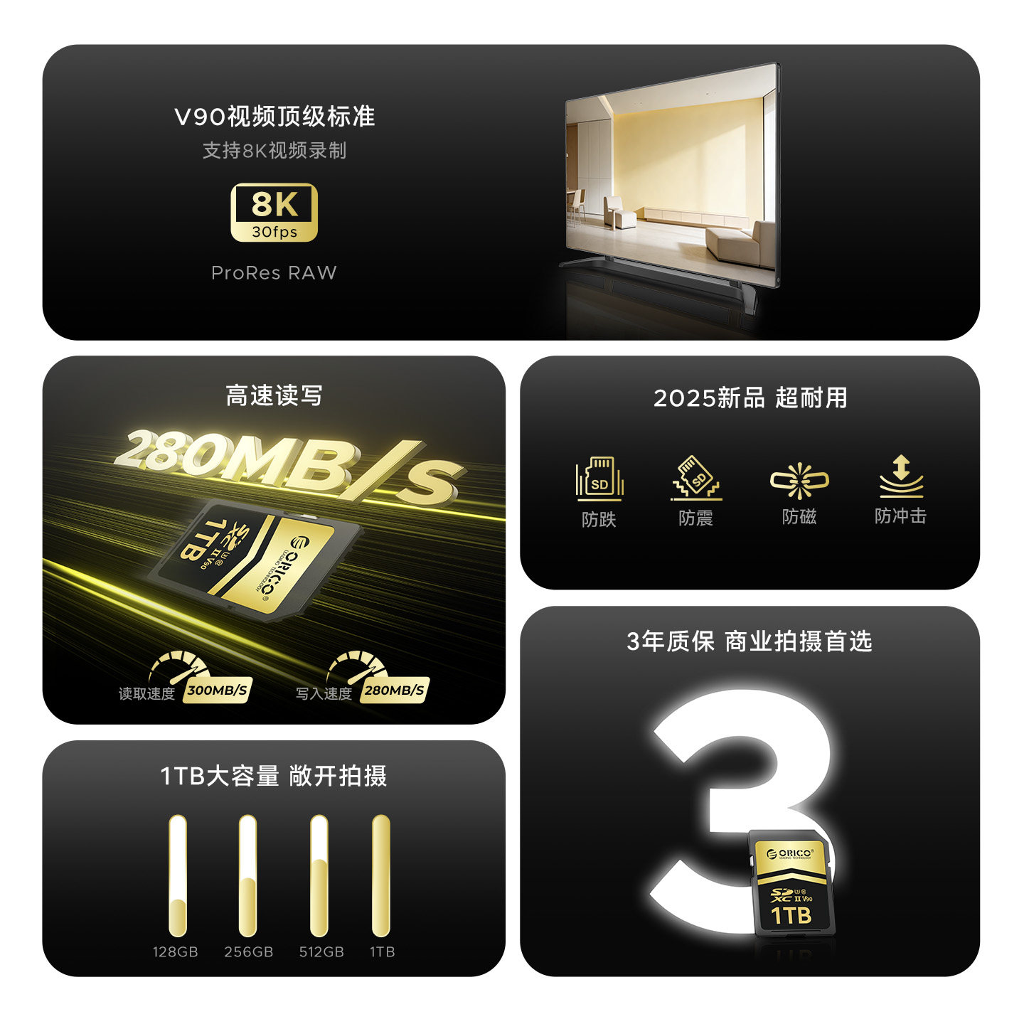奥睿科sd卡512g内存卡微单反数码相机闪存SD卡V90专业高速存储卡