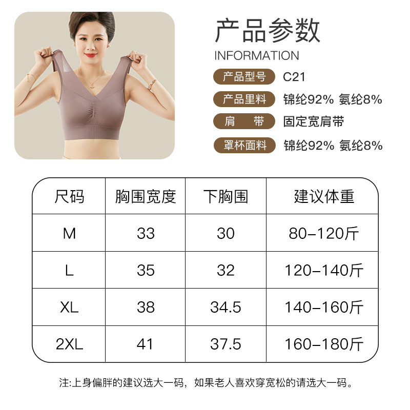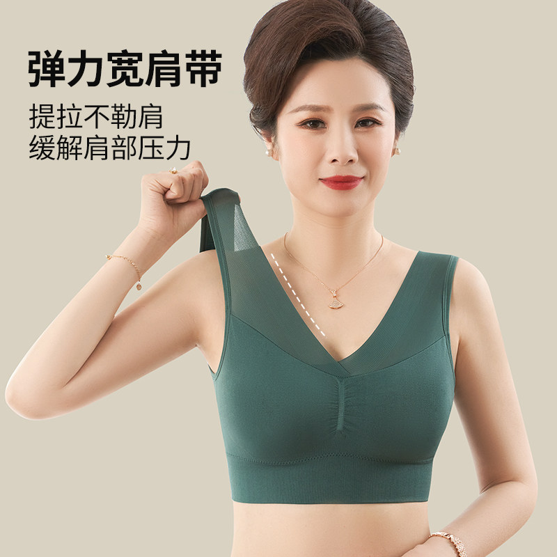 中老年背心式薄款运动内衣女无钢圈无痕妈妈文胸大胸显小聚拢胸罩