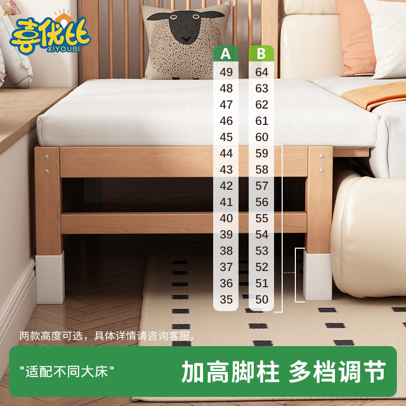 政府补贴榉木儿童拼接床婴儿实木加宽床可定制护栏升降围栏宝宝床