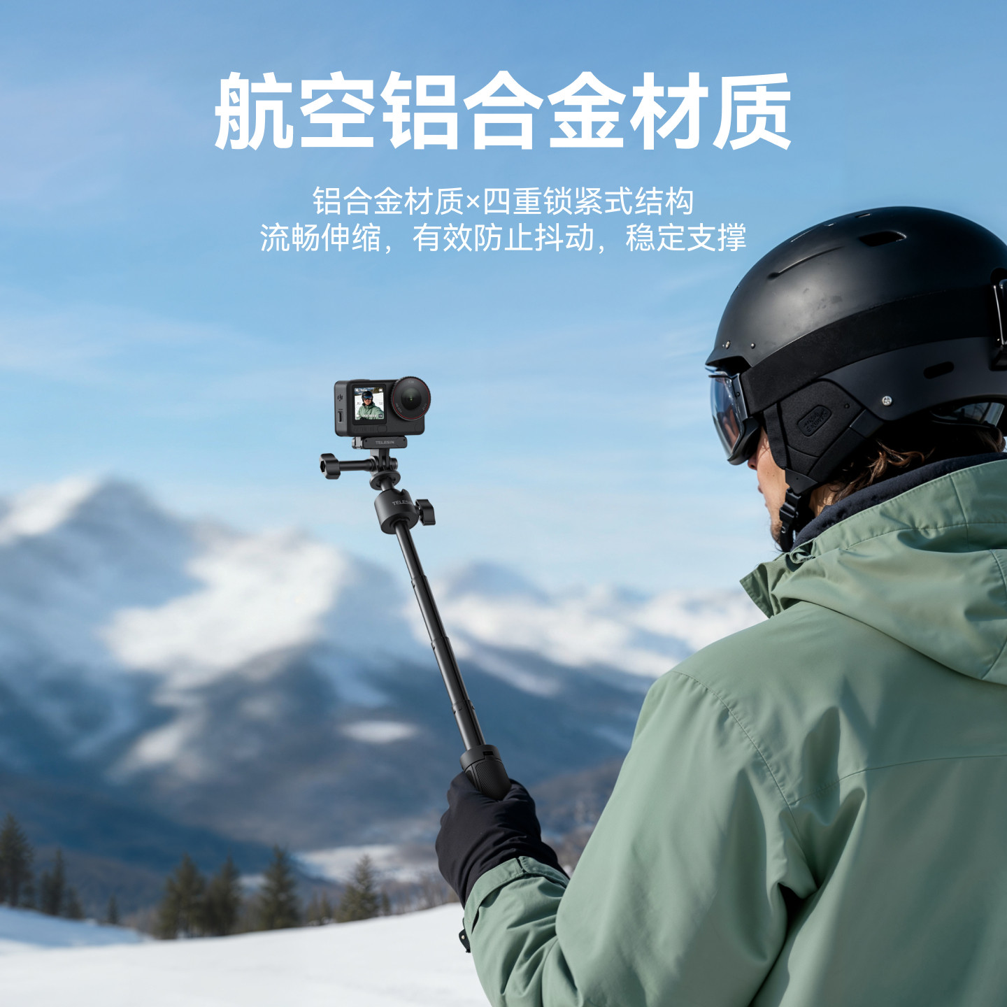 泰迅运动相机迷你自拍杆3.0适配大疆action5/4/3万向球头三脚架迷你便携insta360磁吸防抖支架gopro云台配件