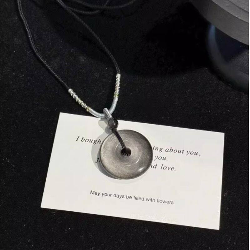 普陀山黑曜石无事牌吊坠女天然护身符项链平安符送男朋友的礼物