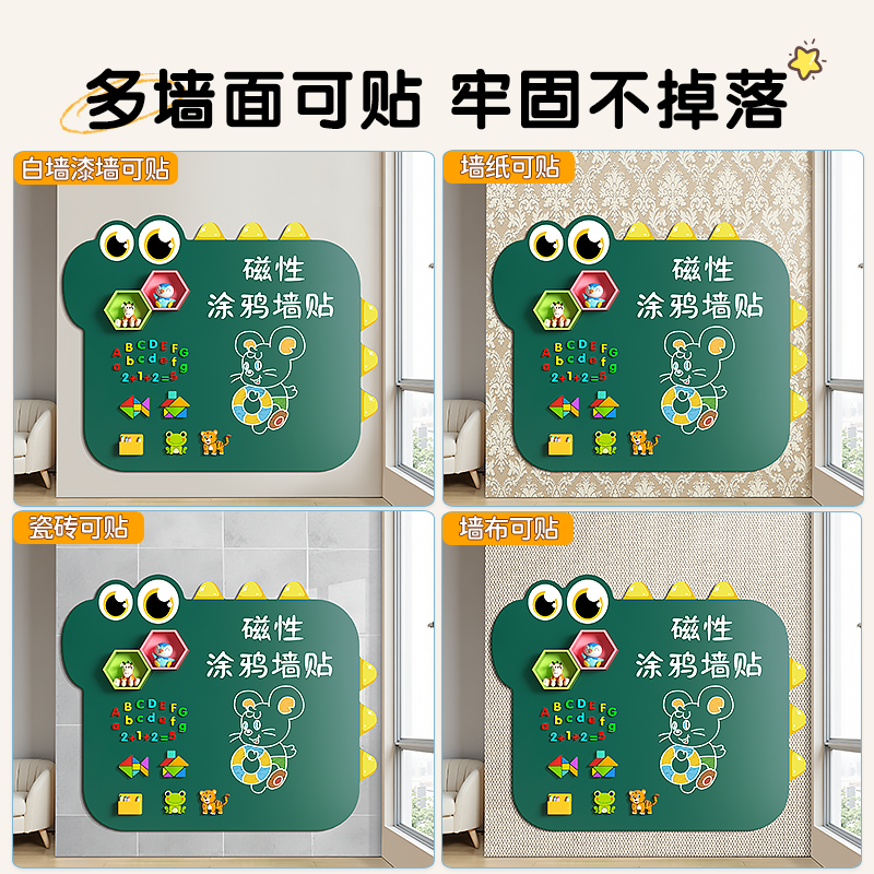 小黑板家用教学可擦儿童家庭学习写字板涂鸦画画板办公用磁力贴墙上面可移动不伤墙免打孔挂墙式磁吸白板墙贴