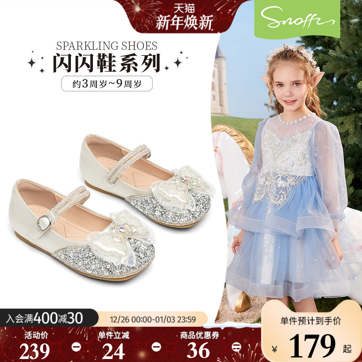 闪闪鞋|斯纳菲女童水晶鞋儿童公主鞋2026春秋新款小女孩软底皮鞋