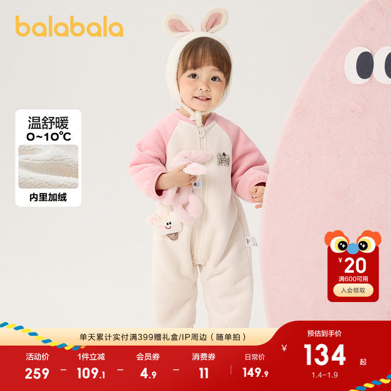巴拉巴拉童装宝宝连体衣新生婴儿哈衣爬服儿童冬装加绒加厚萌趣潮