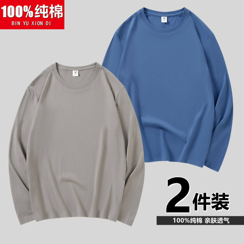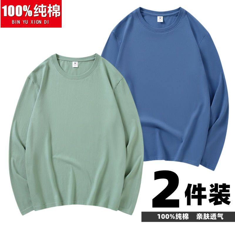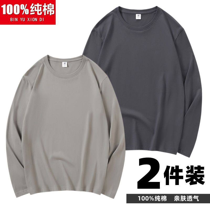 新疆棉2025春秋款纯棉男士长袖t恤圆领纯色秋冬内搭打底衫上衣