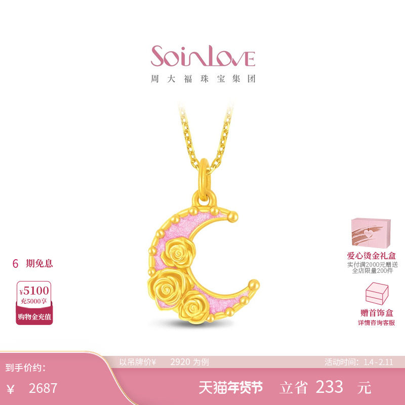 周大福SOINLOVE 宝藏女孩月蕴玫瑰黄金足金吊坠生日礼物 VR1735