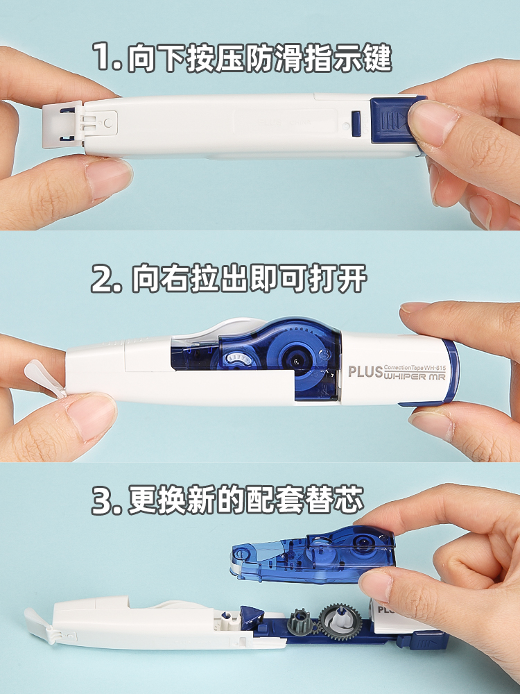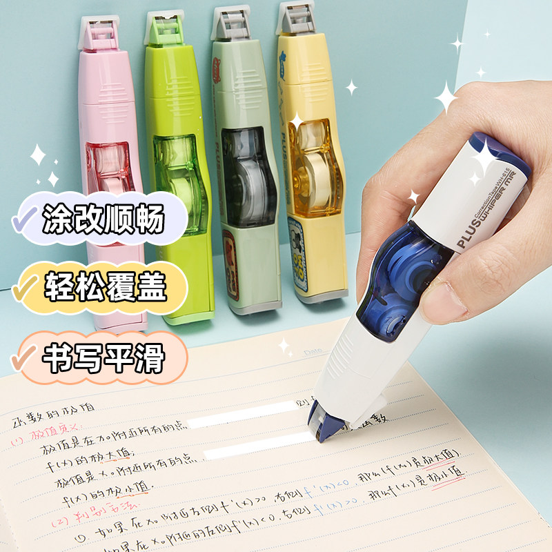 日本PLUS普乐士修正带马卡龙色可换芯学生用涂改带替芯实惠套装文具小学生用可爱高颜值改正带6m文具