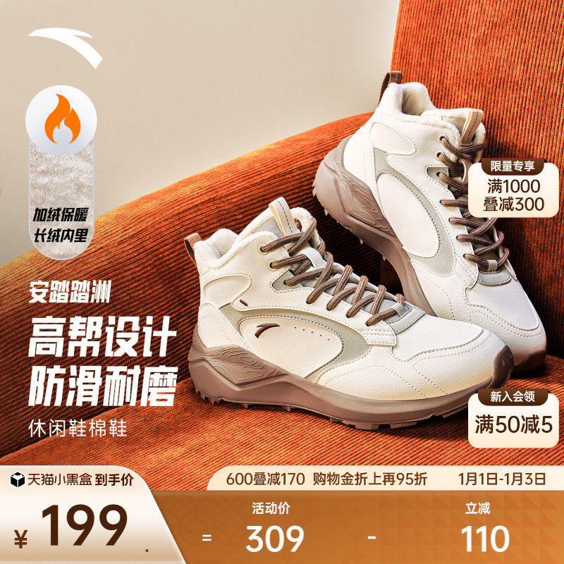 安踏踏洲丨加绒加厚保暖高帮大棉鞋女2025冬季新款百搭休闲运动鞋