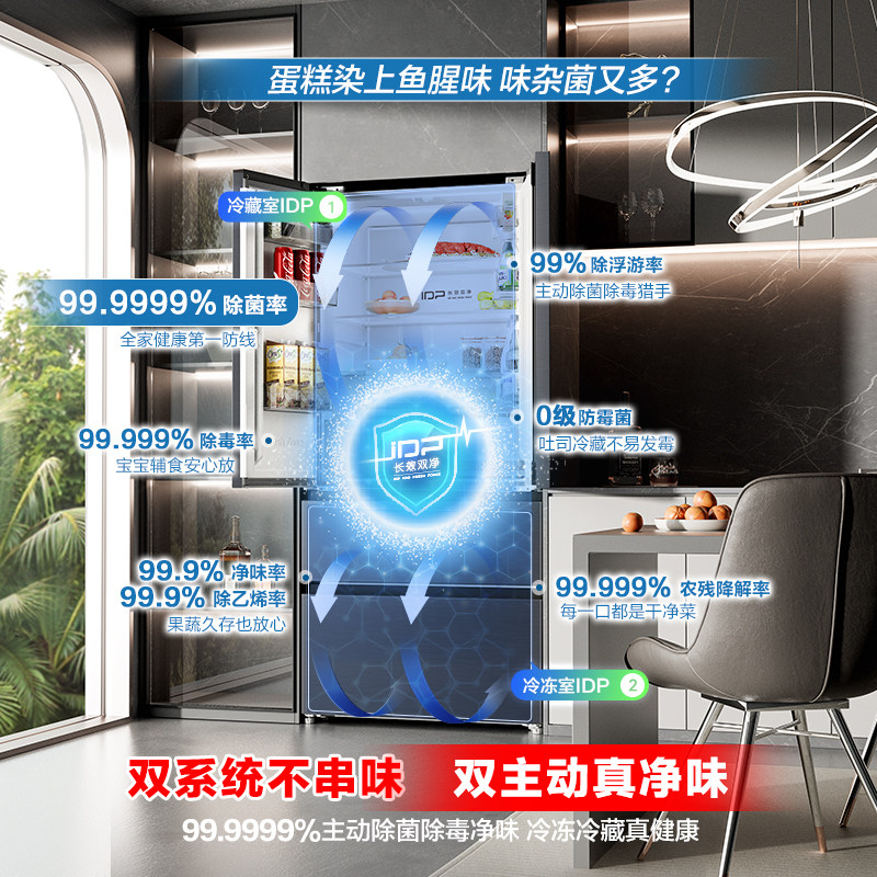 容声方糖516L主动双净双系统法式家用四开门超薄嵌入式电冰箱制冰