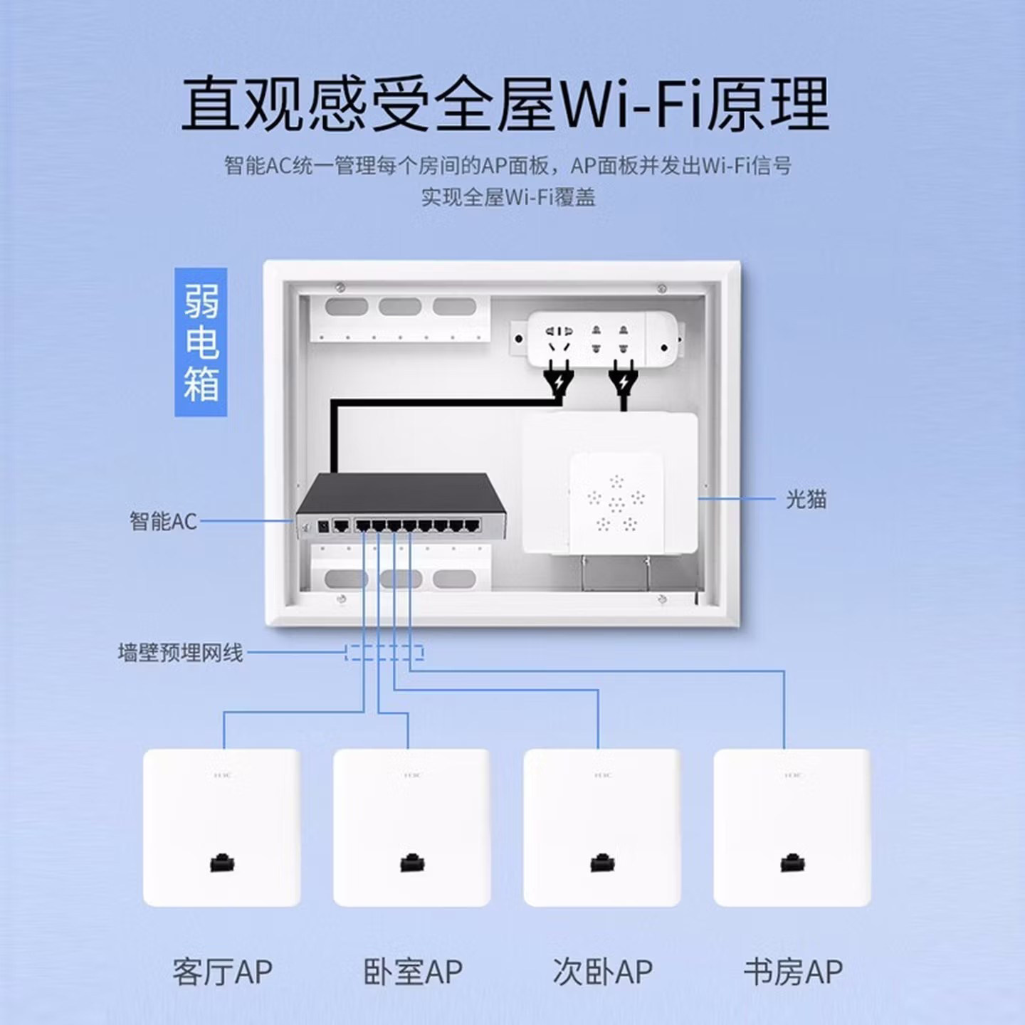 华三(H3C)H1套装无线面板AP poe路由器ac一体化组网套装A100墙壁式组网络全屋wifi覆盖H100