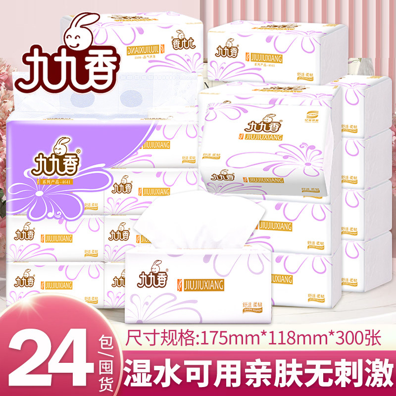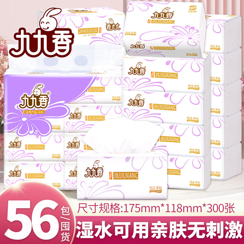 九九香纸巾抽纸64包家用卫生纸面巾纸实惠装学生木浆原生母婴柔软