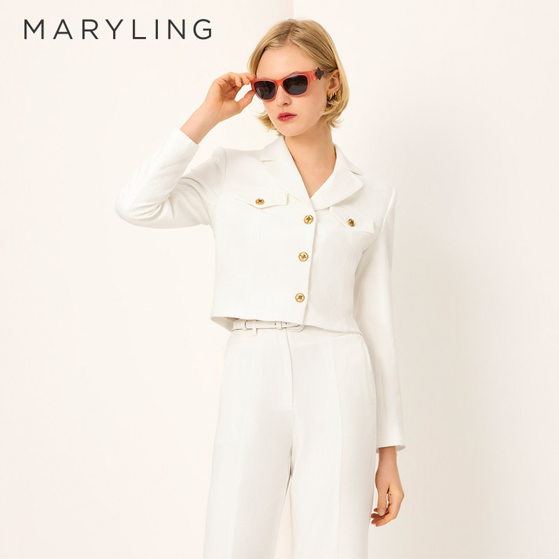 MARYLING玛俪琳2025春季新品白色复古翻驳领西装外套A1FBW14430