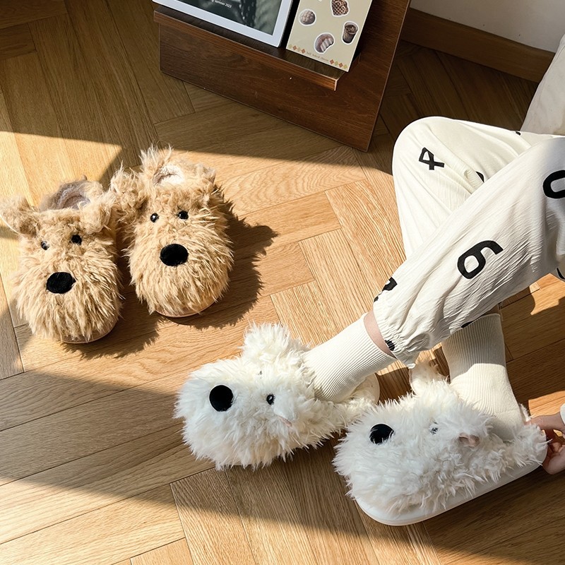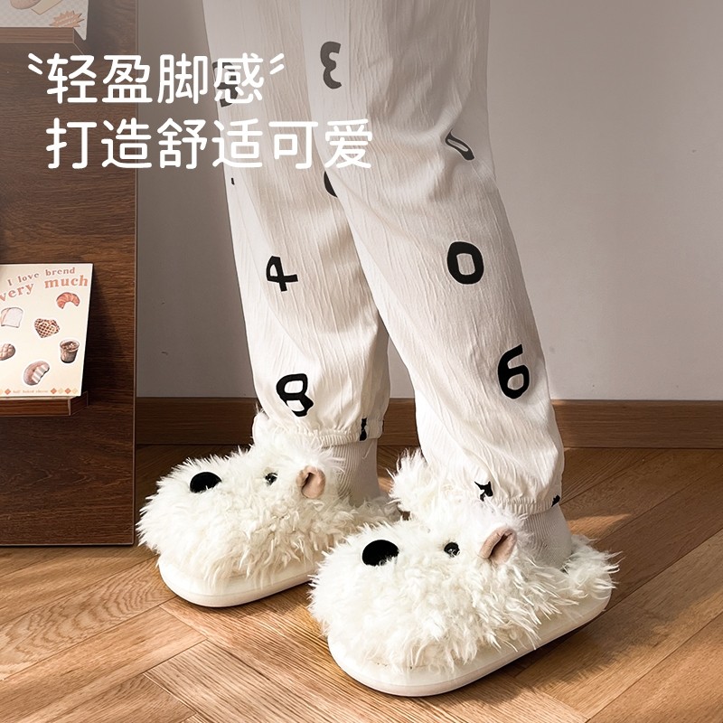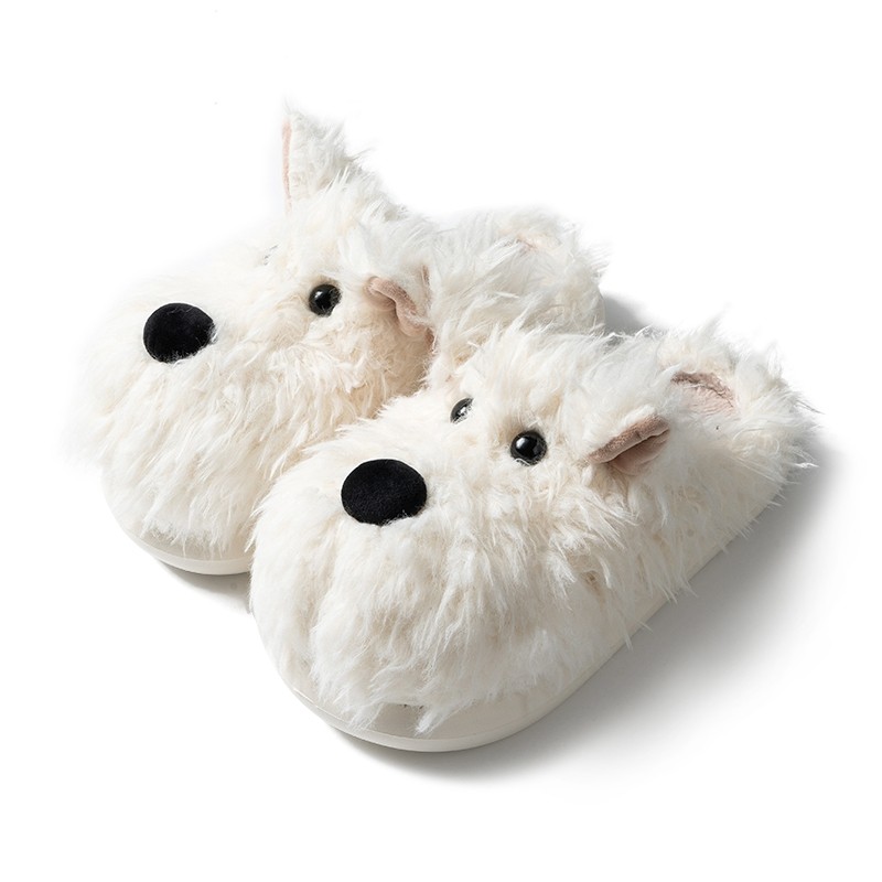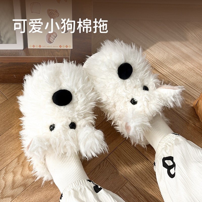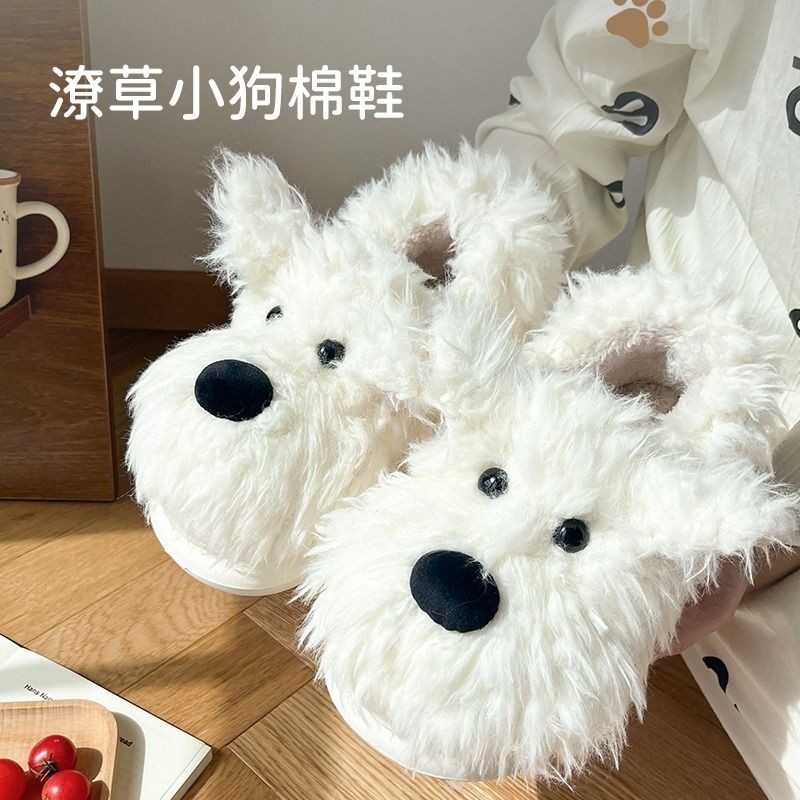 可爱卡通西高地潦草小狗棉拖鞋女秋冬季室内居家宿舍情侣毛拖鞋男