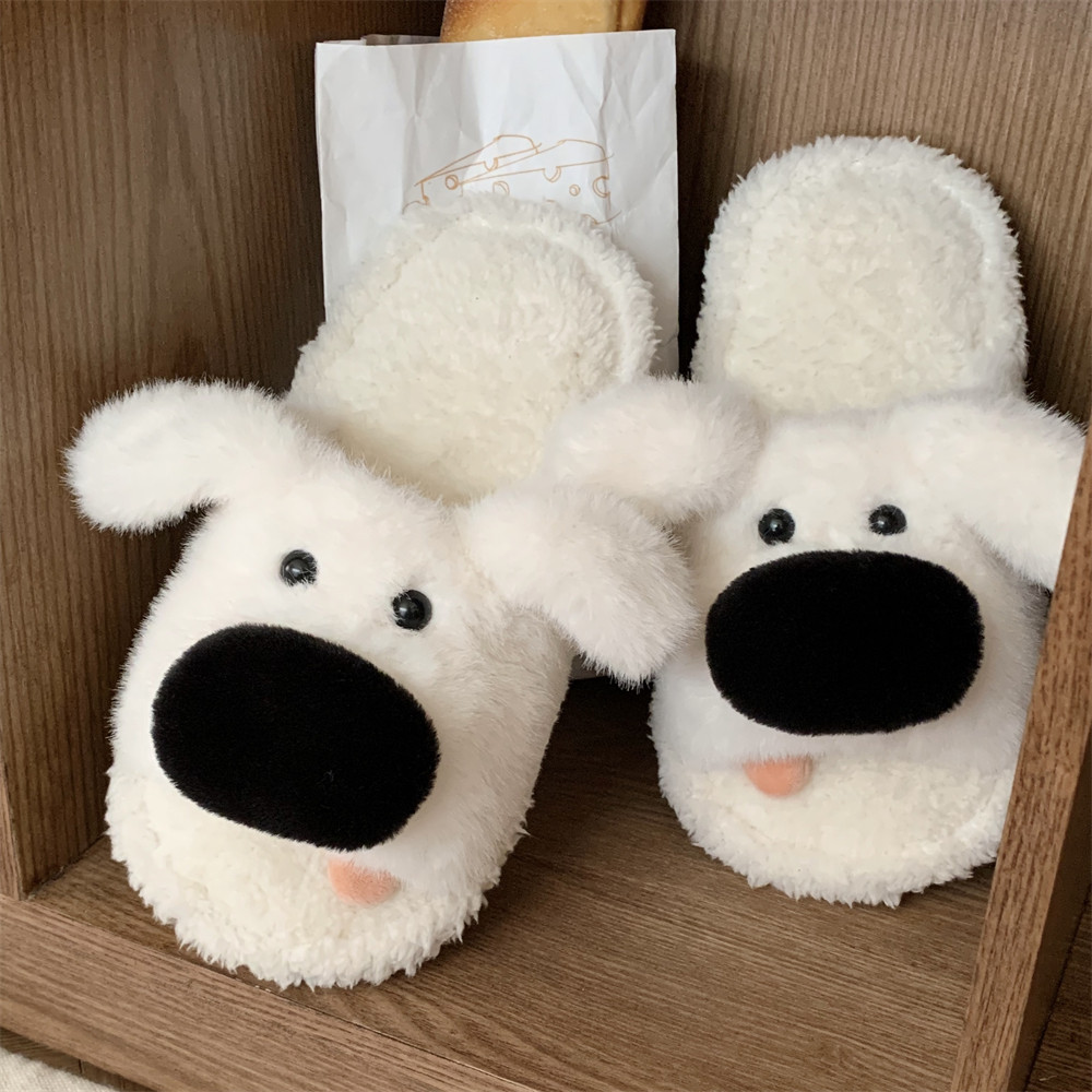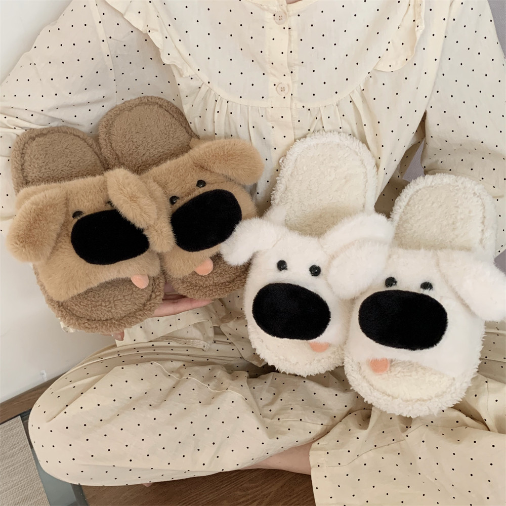 细细条 新款呆萌狗狗情侣毛毛拖鞋居家防滑秋冬季一字棉拖鞋男女