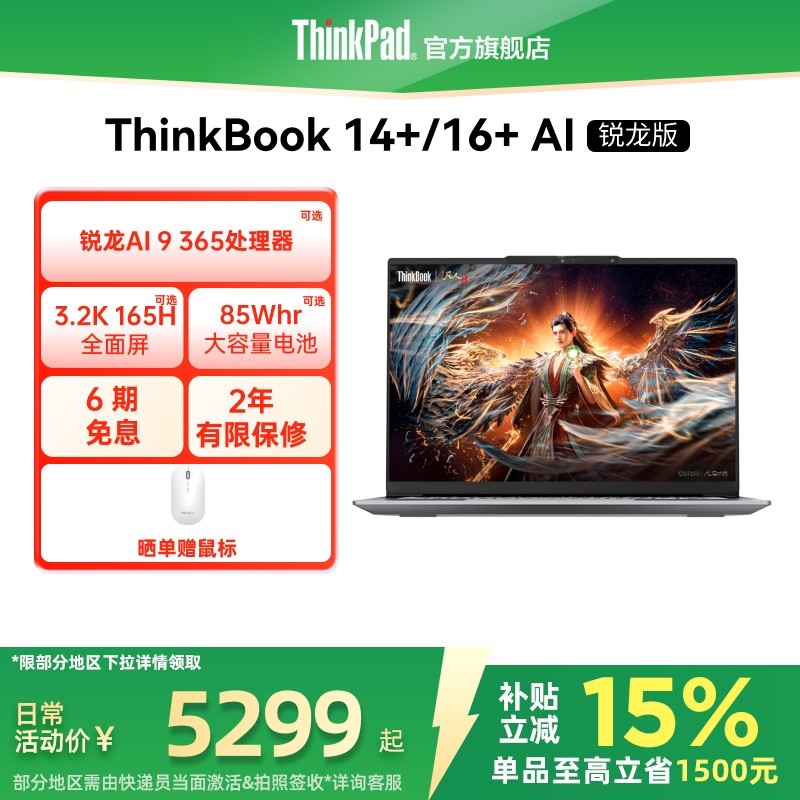 【政府补贴】ThinkPad联想ThinkBook14+16+AMD锐龙R7R9 轻薄商务办公游戏学生笔记本电脑官方旗舰店