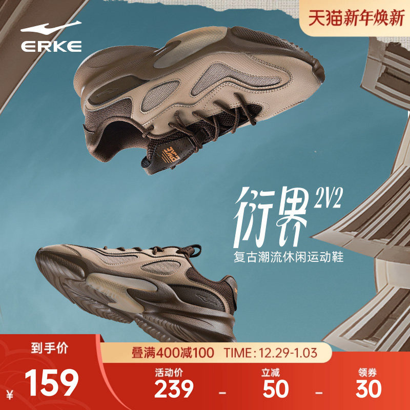 鸿星尔克运动鞋秋冬新款男士休闲鞋舒适百搭网面鞋子减震厚底男鞋