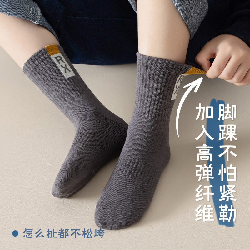 男童袜子儿童秋冬季中筒运动防臭无骨男孩中大童冬季吸汗纯色棉袜