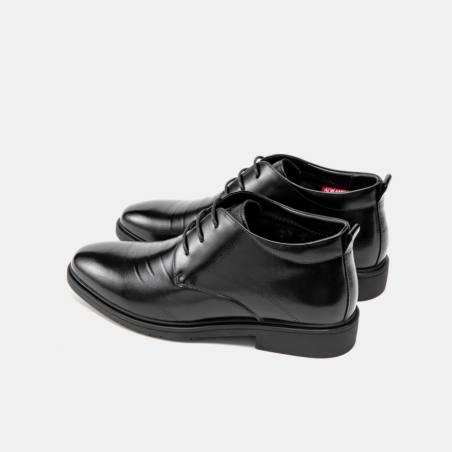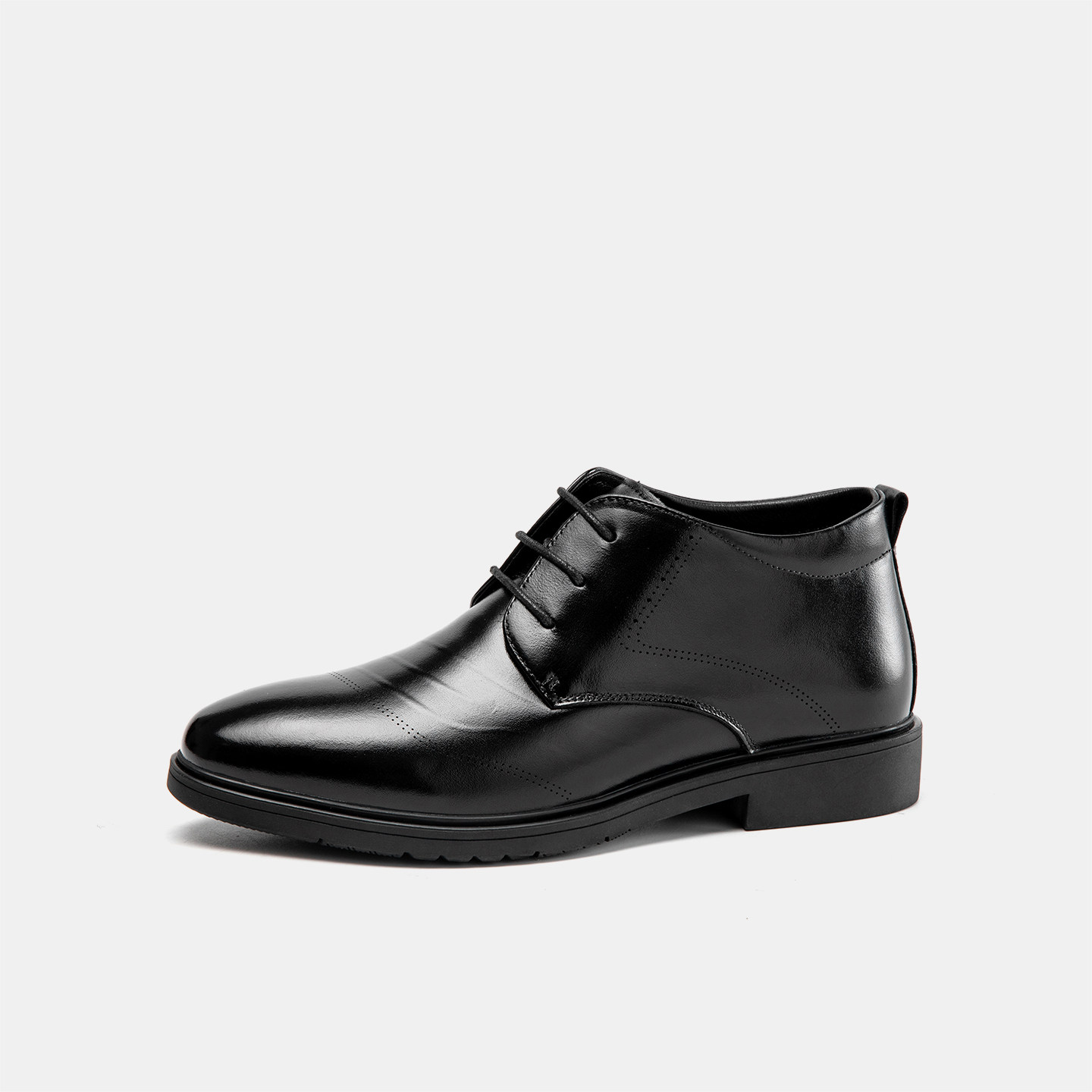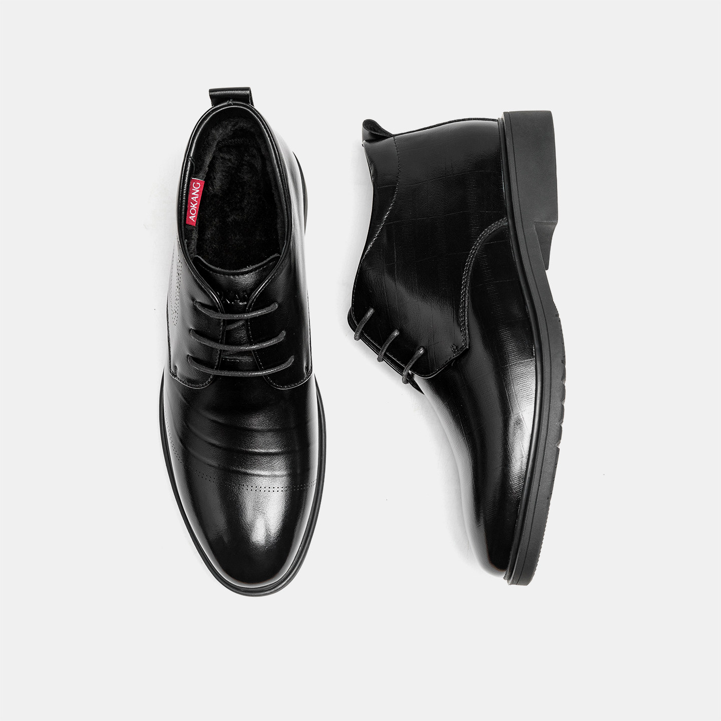 奥康 男鞋2025冬季新款正装皮鞋厚底增高加绒保暖商务尖头中帮鞋