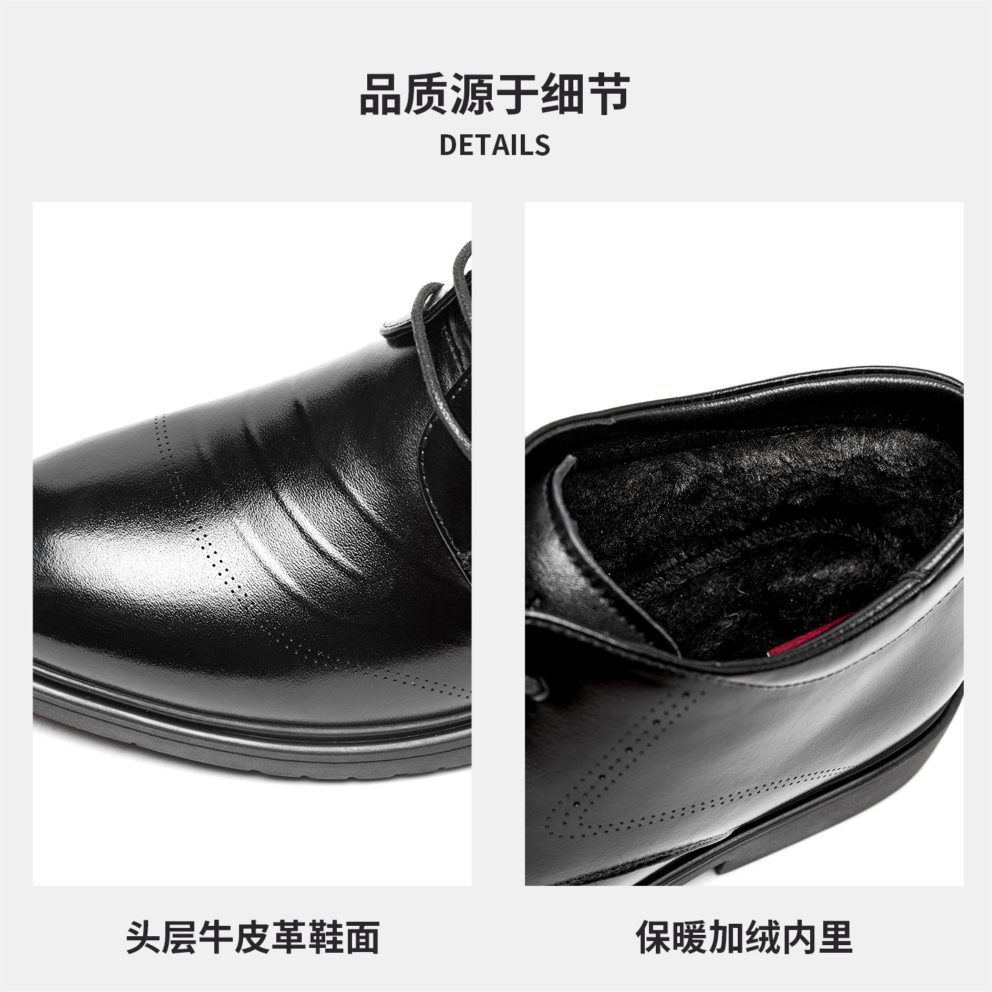 意尔康男鞋真皮男士冬秋商务正装皮鞋男款加绒新郎结婚软底舒适
