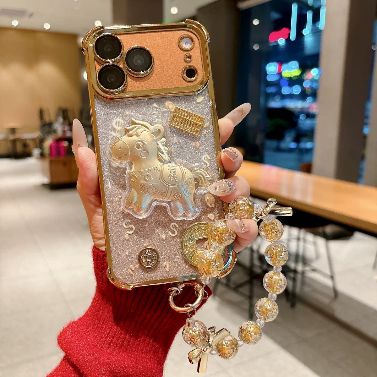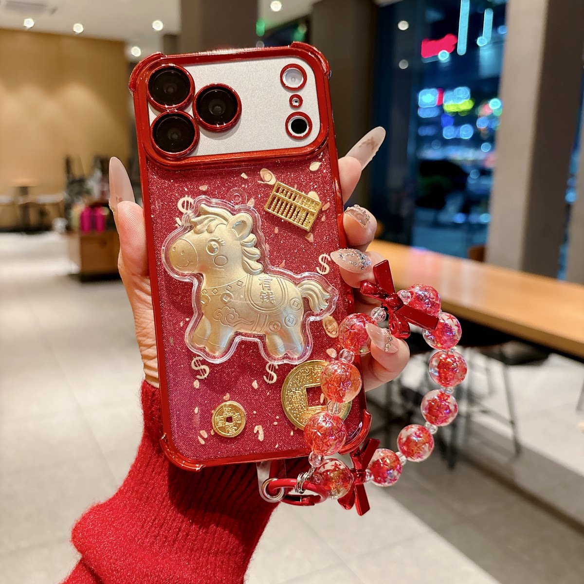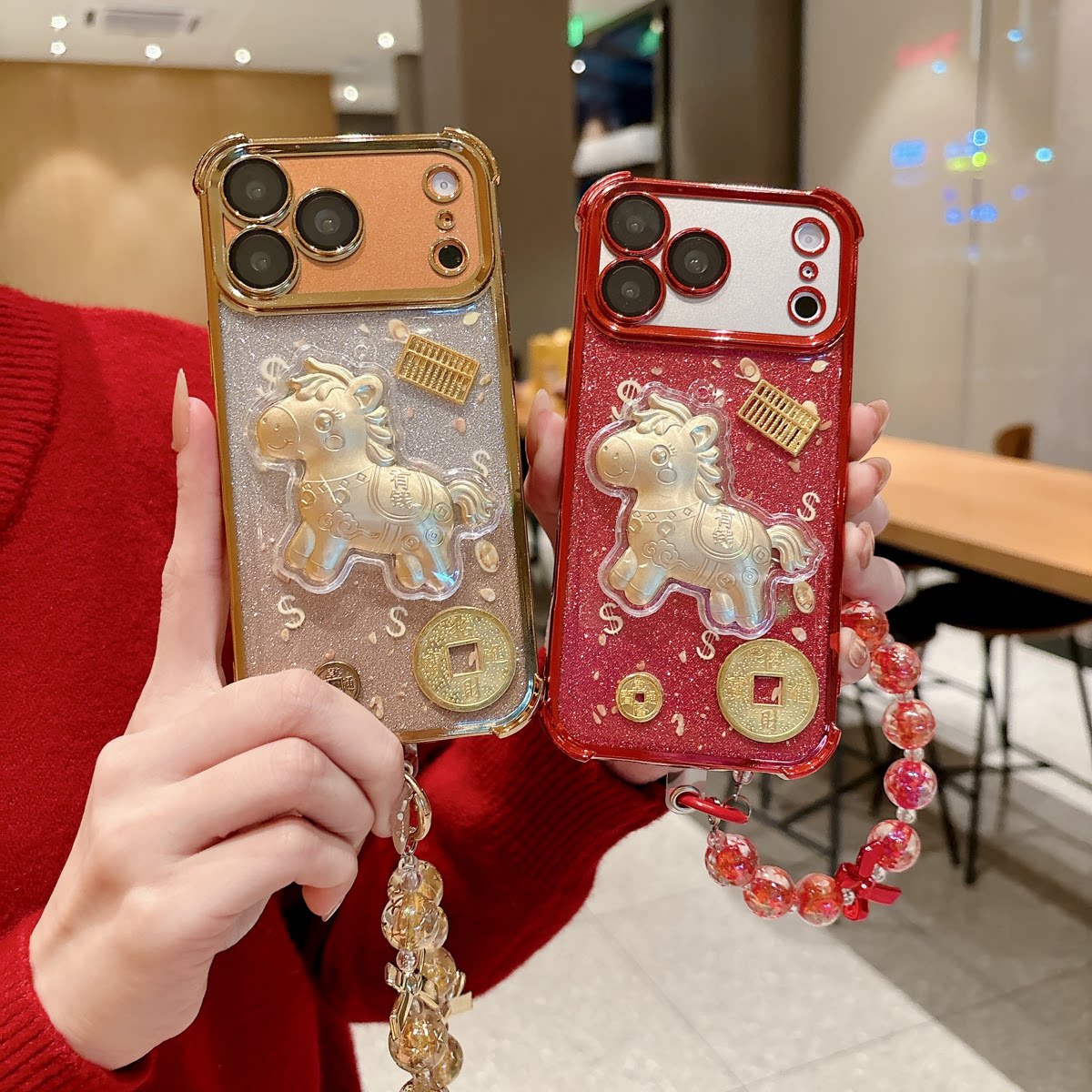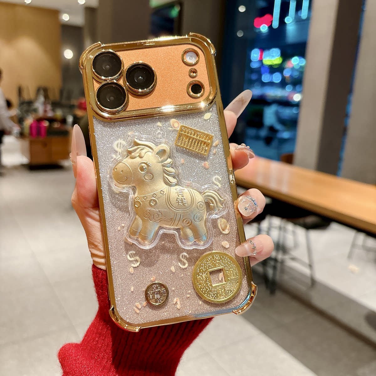新年喜庆立体有钱马适用苹果16/17Promax手机壳IP15/14四角防摔13