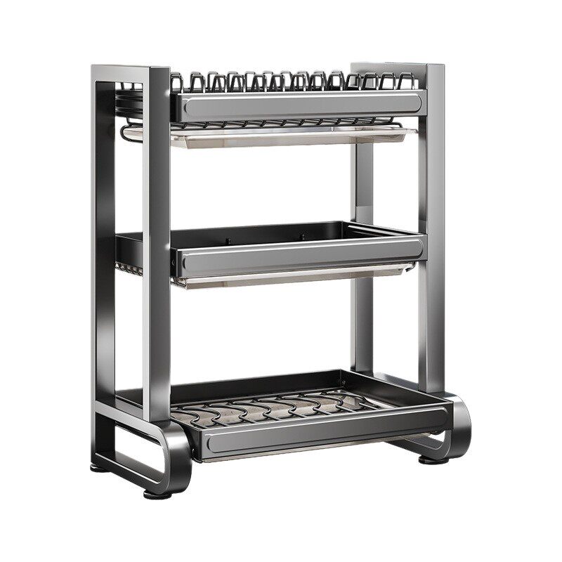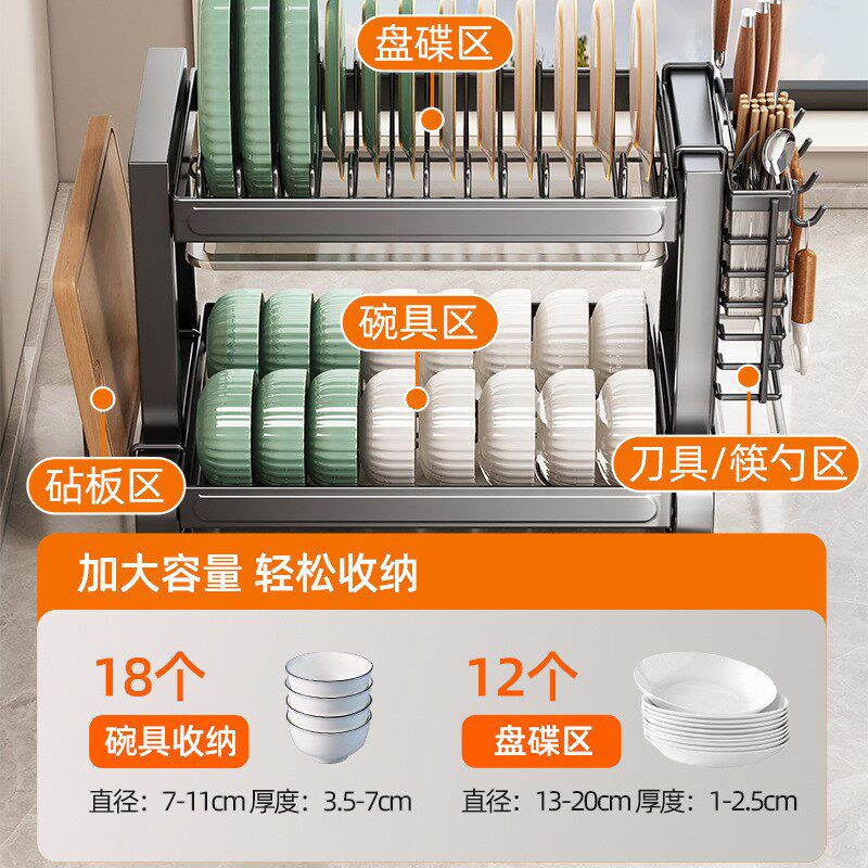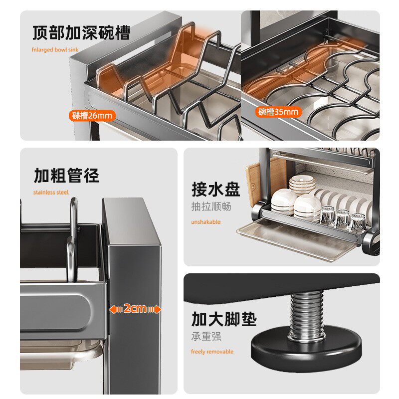 碗碟收纳架304不锈钢沥水架家用多层碗架厨房置物架放碗盘筷碗柜