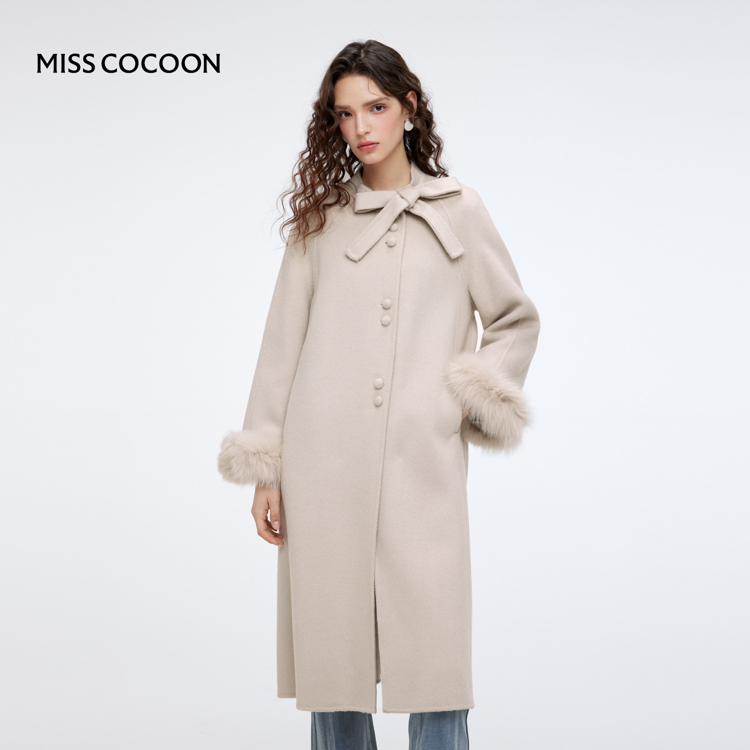明星同款COCOON可可尼长款毛呢大衣2025冬季新款100%绵羊毛外套