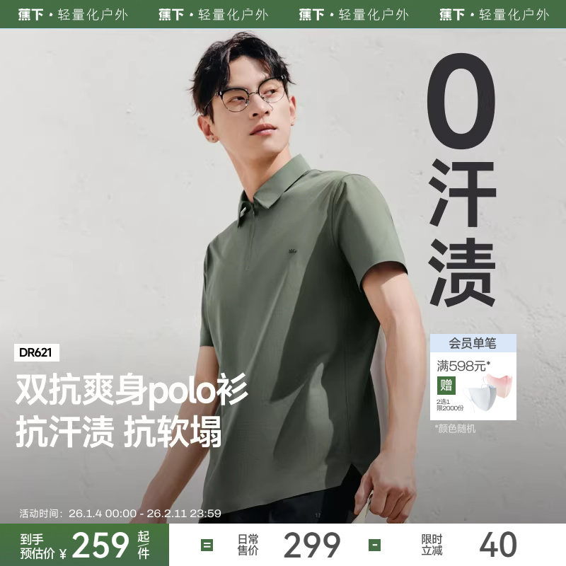 蕉下男士防汗渍Polo衫速干衣商务短袖凉感防晒翻领上衣夏运动T恤