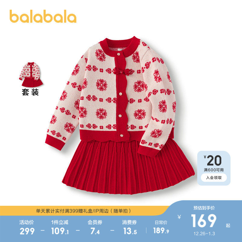 【国博IP】巴拉巴拉女童短裙套装儿童国风2025新两件套保暖春秋潮