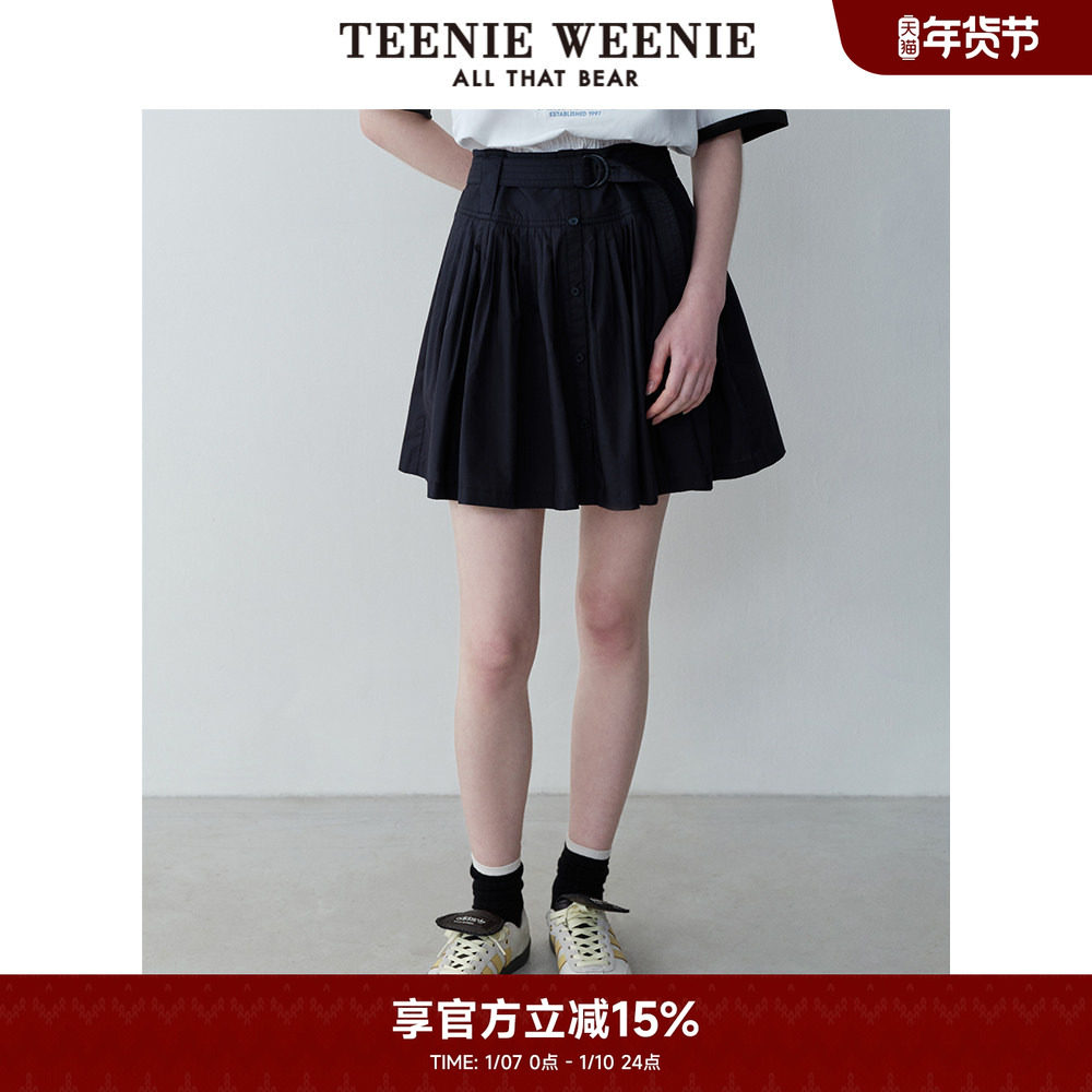 TeenieWeenie小熊奥莱夏装高腰压褶半身裙可调节腰带裙子