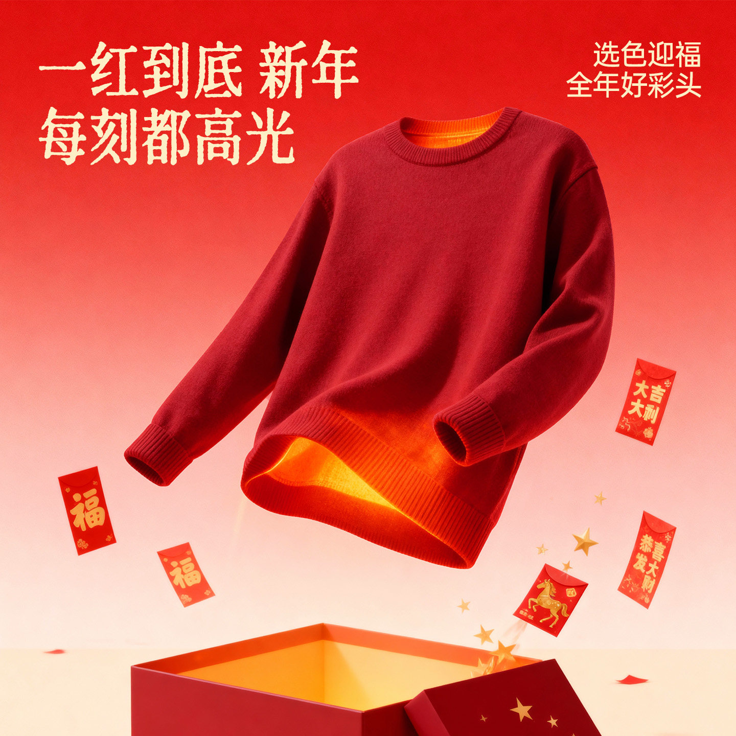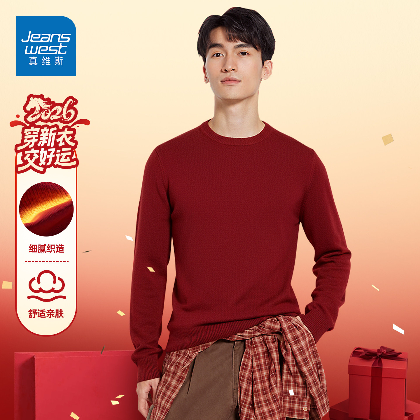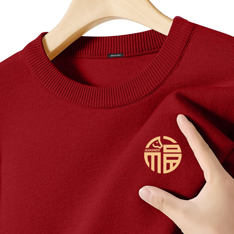 GV真维斯红色毛衣男冬季2026新款保暖针织衫男士马年本命年毛衫A