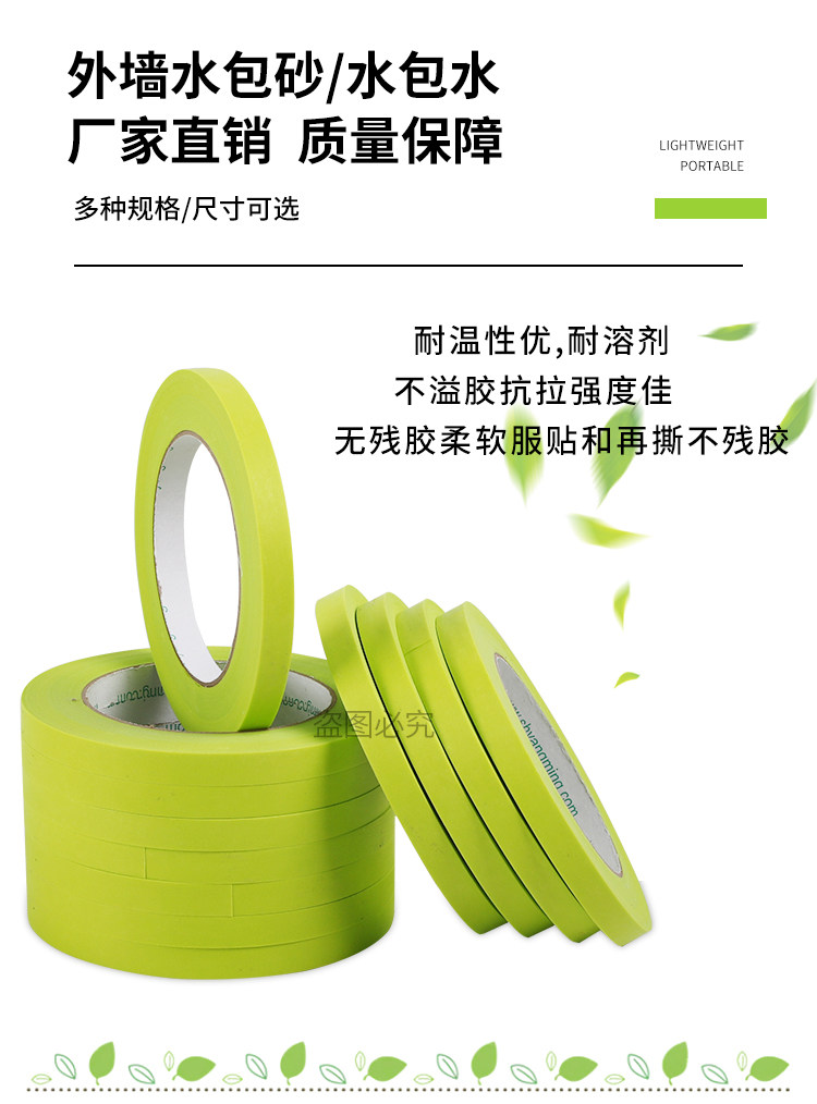绿色美纹胶带880A 7388进口和纸分色纸汽车美容家具喷漆瓷砖美缝