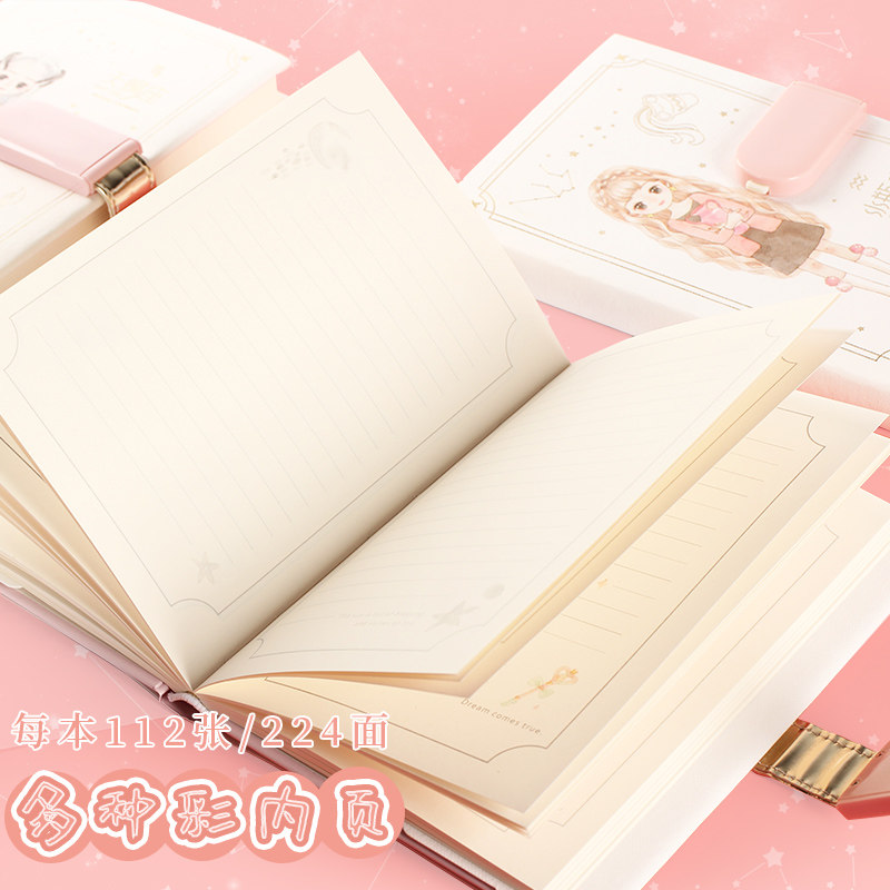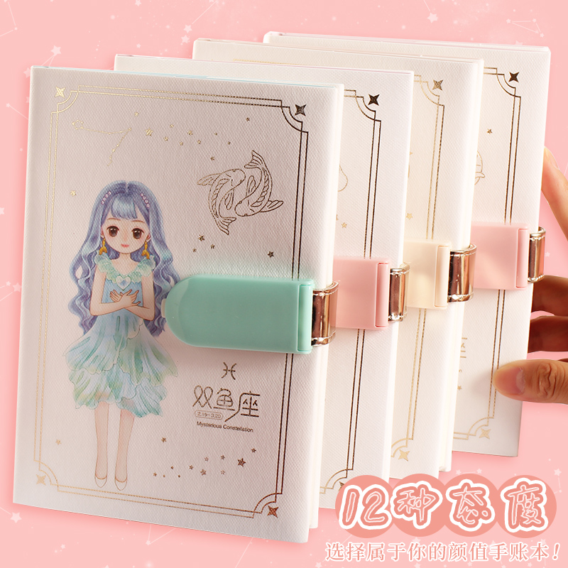 十二星座女孩密码本带锁创意日记本简约学生笔记本日韩加厚少女手账本可爱彩页笔记本子文具加厚密码锁记事本