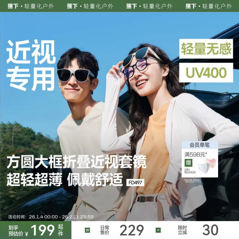 蕉下方框套镜FD497可套近视眼镜偏光太阳镜男款开车女士墨镜镜夹