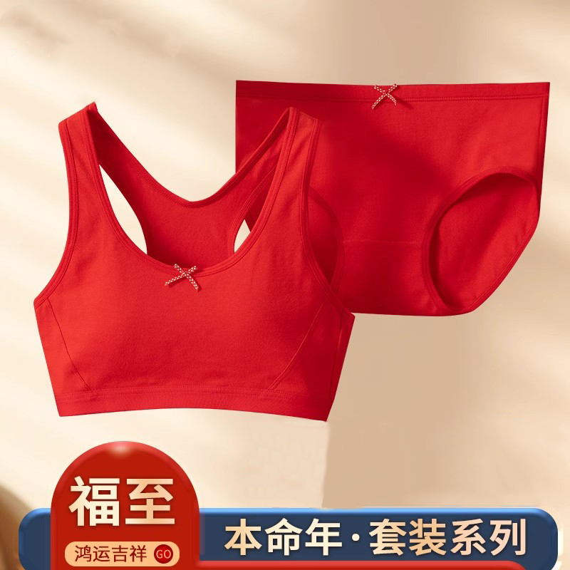 女童本命年红色内衣套装2026马年儿童少女发育期文胸背心12岁女孩