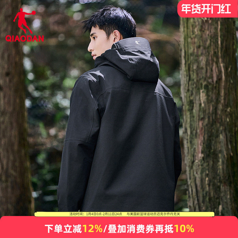 乔丹户外三合一风衣男2025冬季新款保暖防风冲锋黑色外套防水登山